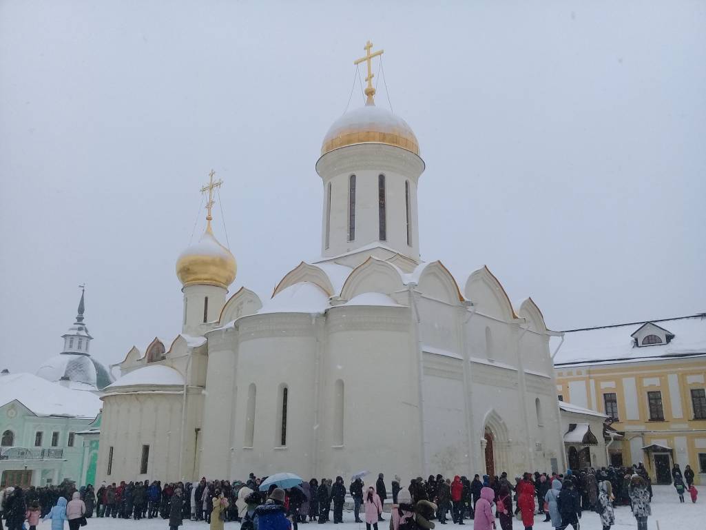 Проснулись мы в 7, совсем не рано и поехали на службу в храм Петра и Павла, который рядом с Троице-Сергиевой Лаврой находится. Какая красивая служба, даже не догадаться, что на клиросе всего три семинариста пели. Очень красивое звучание!