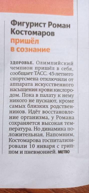 Юлия, про Костомарова хорошая новость, слава Богу.