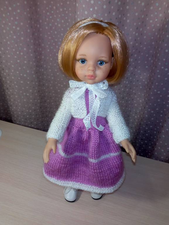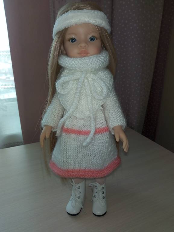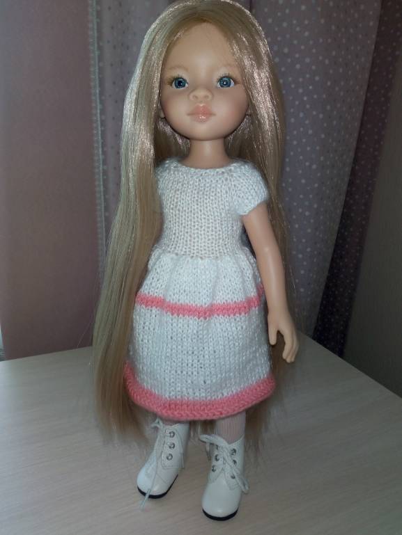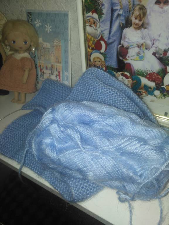 Для новой куколки связалось платье. Низ закручивается.. Нитки тоненькие и напутала еще ряды, надо было платочной вязкой вязать.. Перевязывать не хочу, пусть так ходит