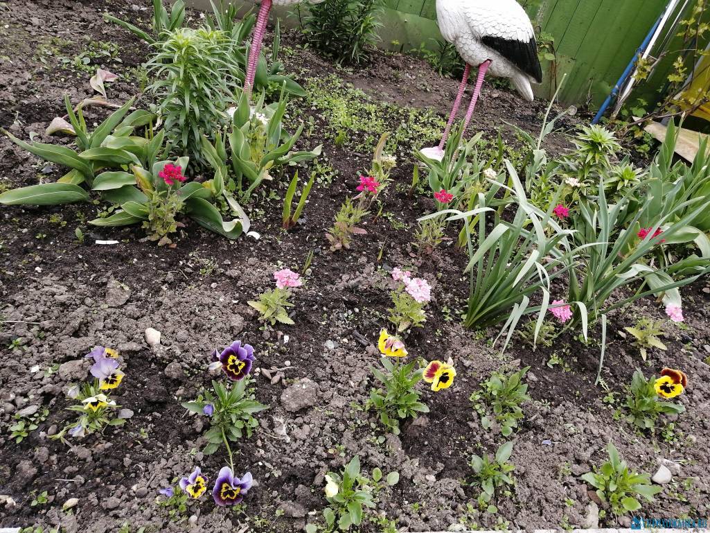 Занималась цветами, гуляла сегодня после работы. Потеплело, анютки раскрываться стали