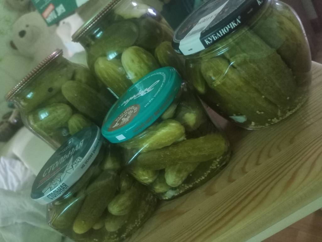 Мы закатали наверное банок 9 всего трешек. И все . Остальные огурцы в заморозке. В салаты зимой и в окрошку. Маринованные у нас почти не едятся. Солю для гостей и в винегрет.