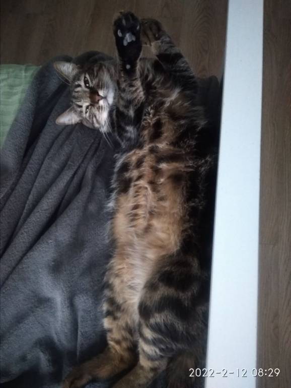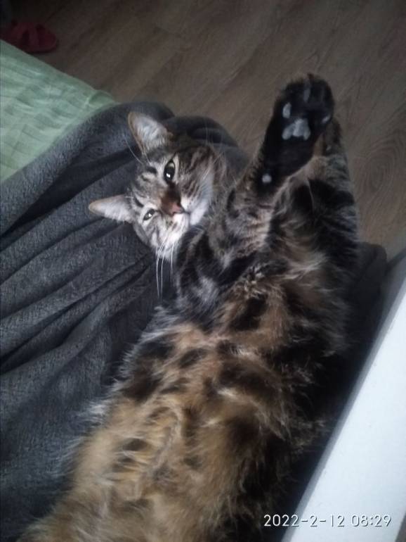 Это муж сегодня утром раньше меня встал и обнаружил у меня в ногах Сергуньку-грелочку