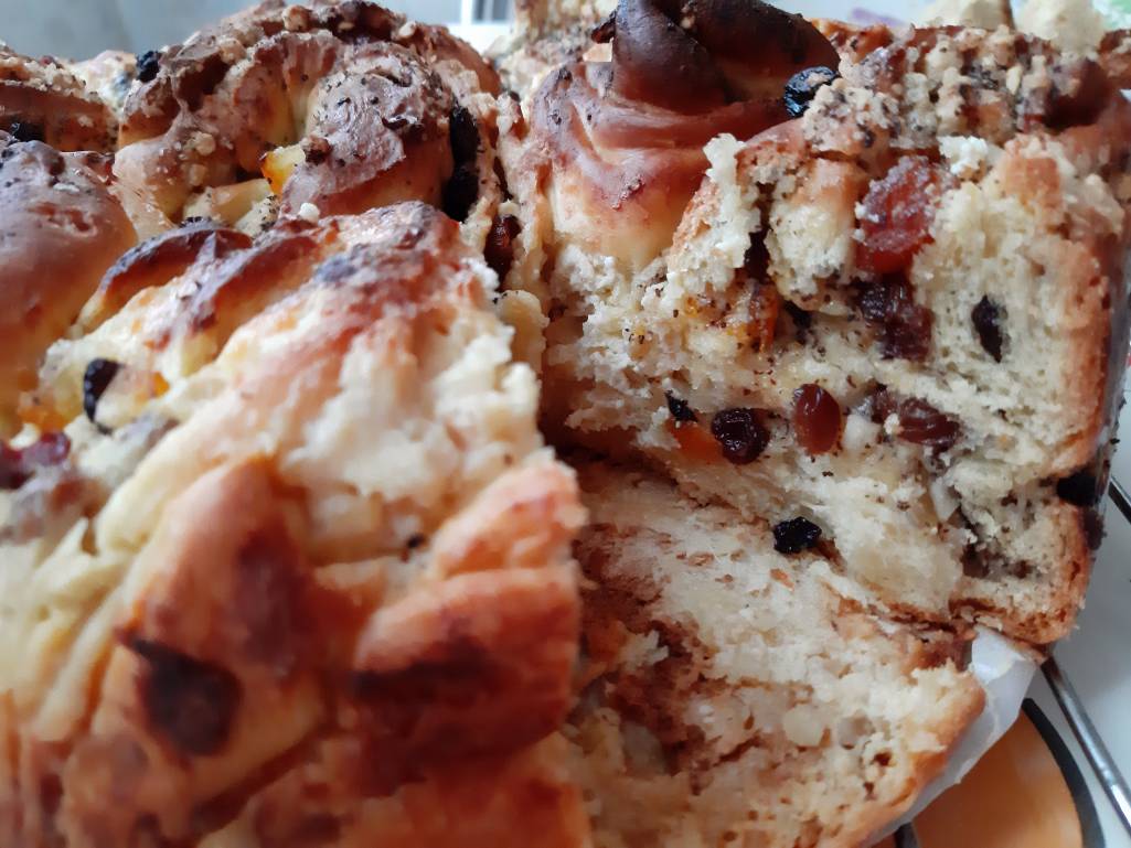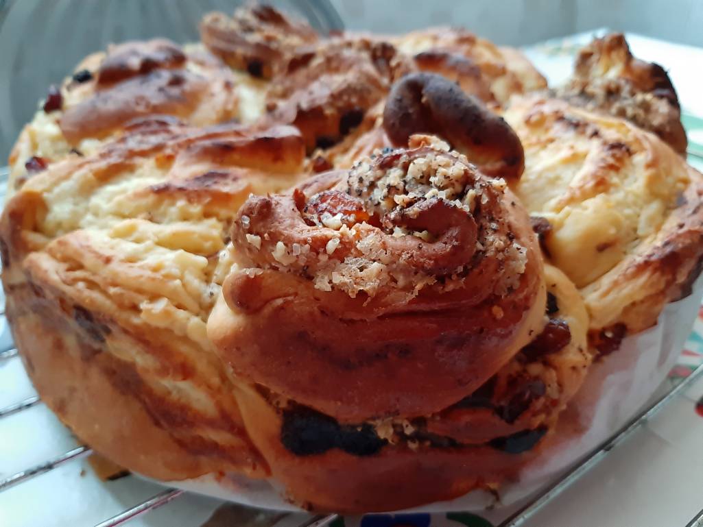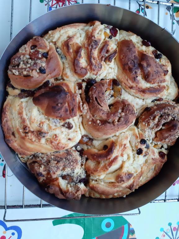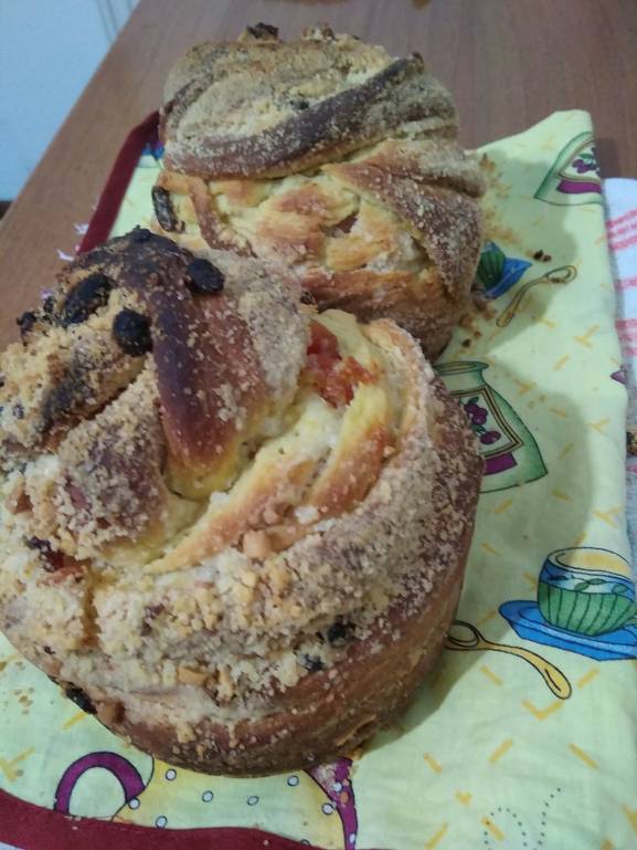 А у меня сегодня получился микс с двумя начинками- частично с творогом и изюмои, частично с цукатами, изюмом... тает во рту..аромат непередаваемый