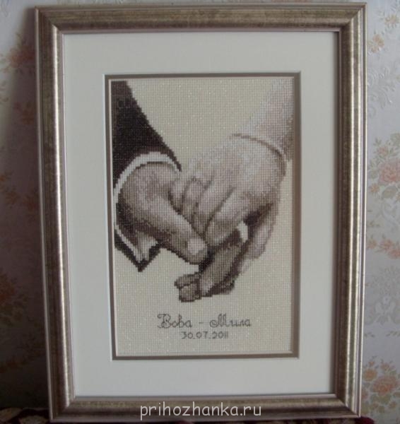 А потом нас пригласили на свадьбу и я посоветовавшись с мужем решила вишить для них, кроме обычного подарка в конверте подарок на память. Знаете, так долго немогла решить, что именно вышивать, с мужем советовалась и всё как то не находили общего решния, что я уже хотела отказаться от этой затеи, НО муж сказал "Я хочу. что бы ты вышила", ну и как я могла устоять???