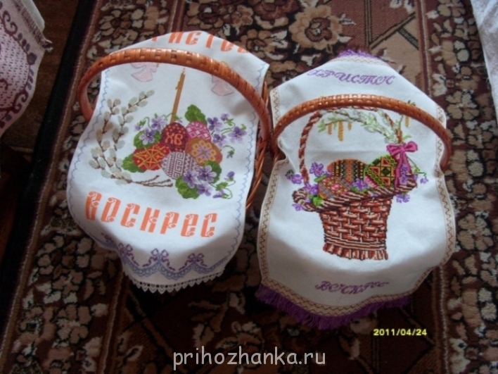 А когда закончила "Скалистый берег" вышивать и т.к. приближался светлый праздник Пасха, я решила, что нужно вышить рушнычок на корзинку, на фото 2 рушнычка, один там где карзиночка с писанками - это давно вышитый, а второй где без корзиночками с ангелочками - это вот в прошлом году вышит.