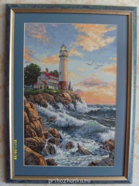 Закончив вышиванки, мне очень захотелось вышить, что то большое, красивое и т.к. тут я очень скучаю за морем,( училась в Одессе и вообще я недалеко родилась от Одессы), то приглянулся мне ДИМовский "Скалистый берег". Вышивала я его долго, работа непростая, но вышивала я с удовольствием и ещё с большим удовольствием теперьрадуюсь тому, что она уже готовая красуется у меня дома на стене.