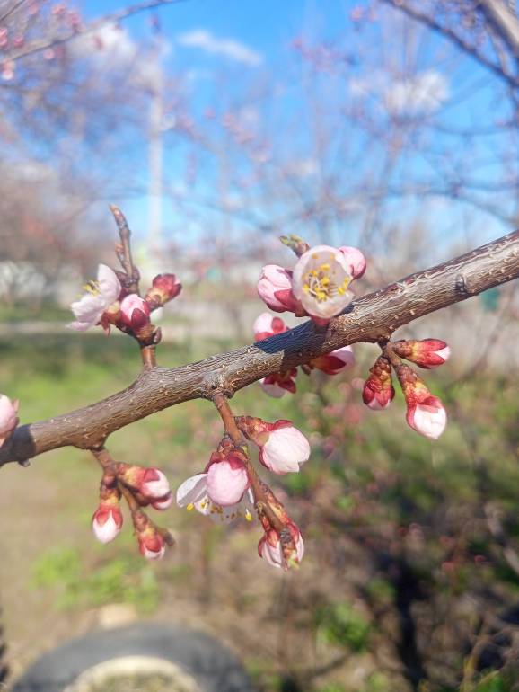 У нас морозы, ночью до 12, днём -4, примерно. Но солнце яркое, с крыш капает, во дворе лёд