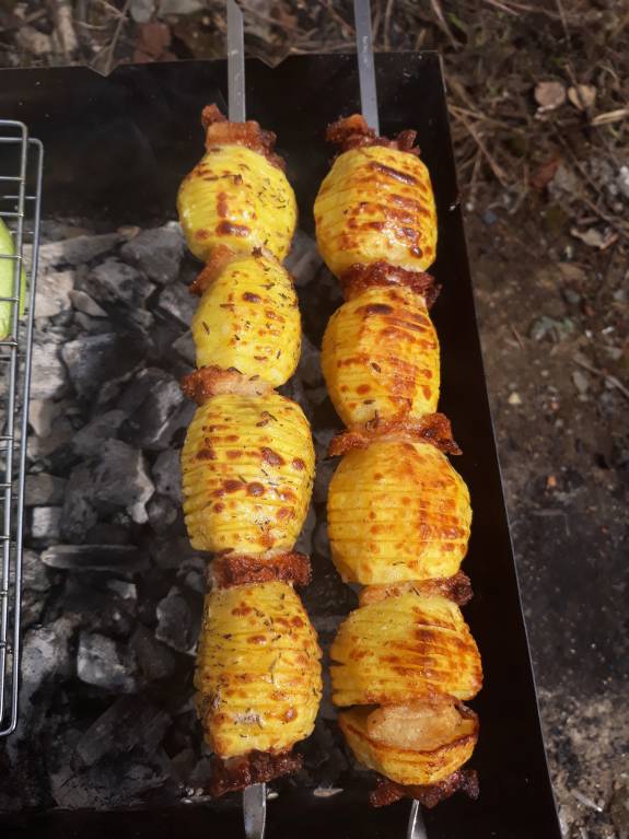 она порезана и собрана на шампур,правильно? Мы все больше печем заворачиваем в фольгу и на угли(золу) Очень аппетитно!!!