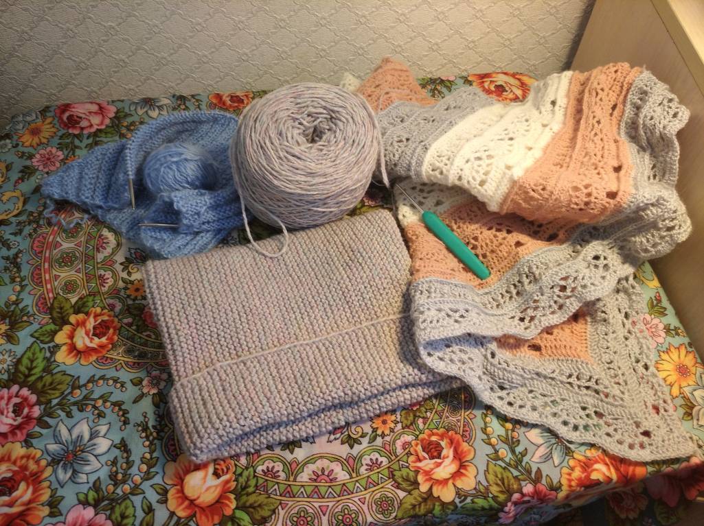 В планах:довязать шапчонку племяннику,переделать верхушку своей ,,бини"и закончить шаль.