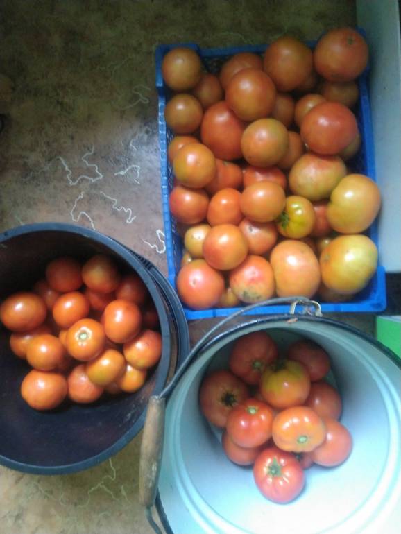Вчерашние помидоры были цветочки. Сегодня папа привез мне мешок помидоров и огурцов немного