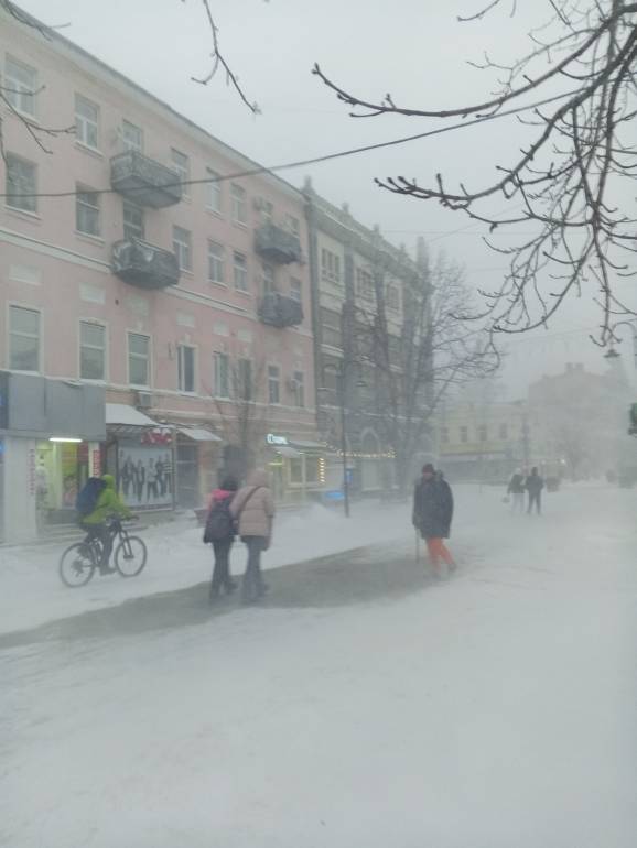 Дорогу переходили, еле на ногах устаивали сносило с ног.