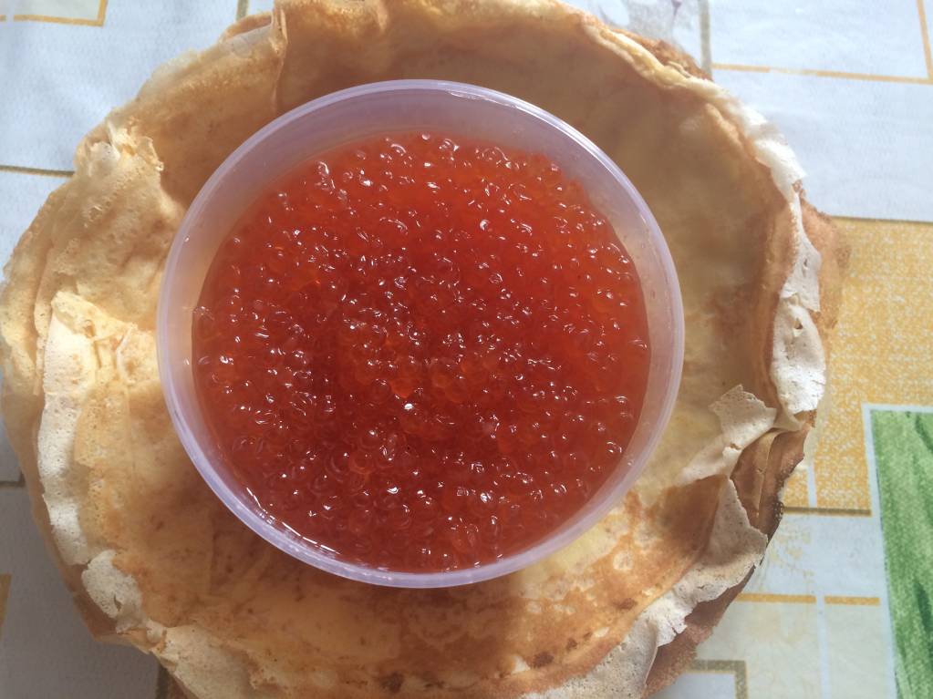 он оооочень любит блины, и так же любит икру.... думаю именно её он и припас