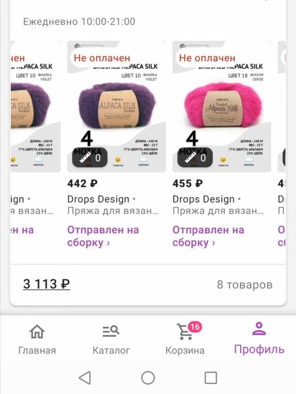 И ещё каким-то чудом охватила на вб одну из любимых моточных пряж - Brushed alpaca silk. Самая низкая цена на моточек в магазине сейчас - около 300 рублей. Мне досталась она за 450 за 4 моточка. Взяла 4 комплекта двух цветов, только они были на такой удивительной акции. Акция была всего несколько минут, потом цена сразу на тысячу выросла. А я теперь жду доставку моих моточков
