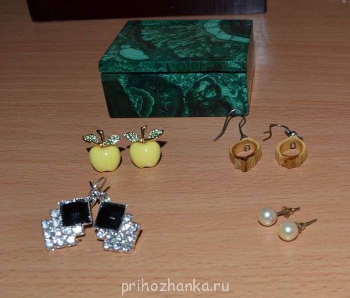 серьги справа от яблочек сделаны из косточки сливы.
