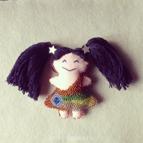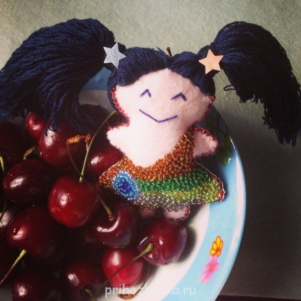 Я бисером не вышивала никогда и ничего, а тут вдруг сделала такую куколку из фетра.