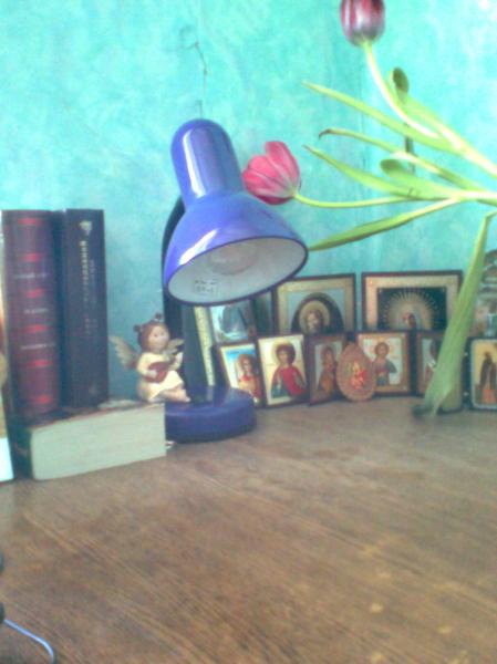 Только сейчас прочитала сообщение ОлиОдри: В родительском доме у меня был такой уютный уголок на столе, так все там было замечательно устроено (знаю, что на лучше на стену вешать) - учишься, зубришь что-нибудь, чуть глаза от книги оторвал, взглянул на лик Спасителя, "Господи, помилуй!" и дальше грызть гранит науки.