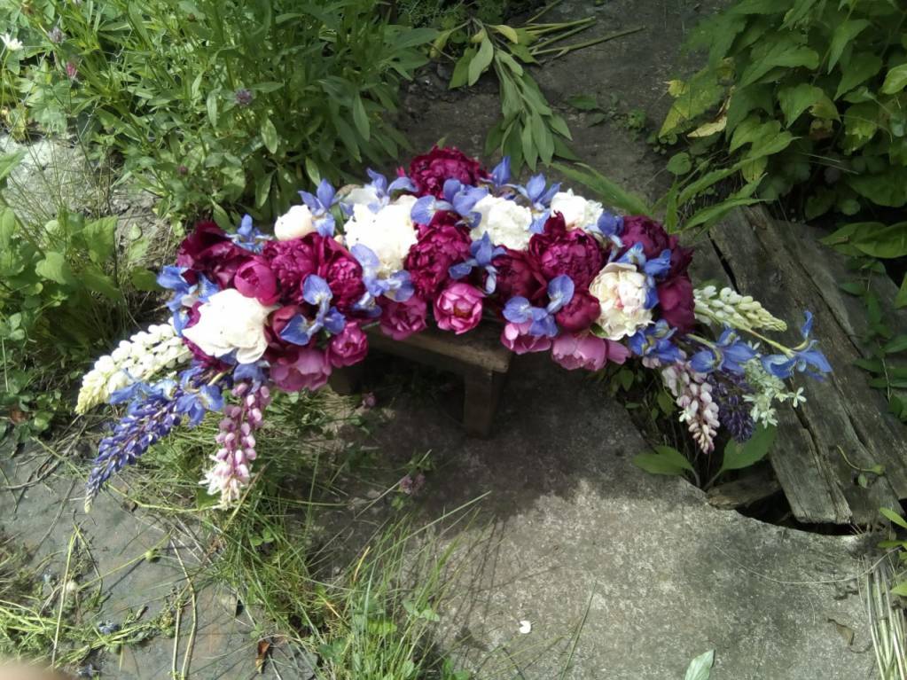 Сегодня решила сделать экспромт на аналое на завтрашний праздник. Все было спонтанно - куча пионов на даче, сибирский ирис, люпин... Вот что получилось. Потом сфоткаю в храме.