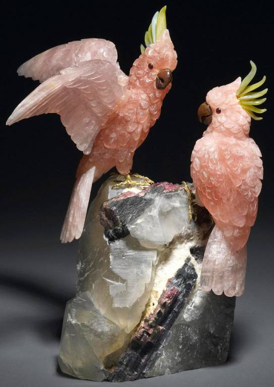Скульптура “Попугаи“ вырезано из минерала кварц
