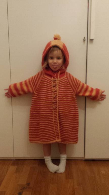 Извините за качество фото, захотелось поделиться одной из последних работ. Связала для младшенькой, хотелось как пальто- рукава и сам реглан довольно таки на вырост , посмотрим, может рукава немного укорочу пока, чтоб удобней носилось. На фото они сильно подогнуты.