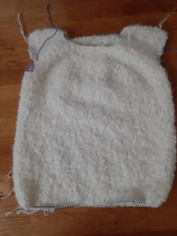 В эту неделю я поработала неплохо, считаю. Топ, правда не довязала. Перед довязала, даже с перевязом плечевых скосов ( не заметила, как в телефоне перескочила на другую страницу и связала для маленького размера), сшила, обвязала айкордом горловину. Но мне кажется очень широкой. Поэтому перевяжу снова, скорее свяжу резинку, она должна уменьшить.