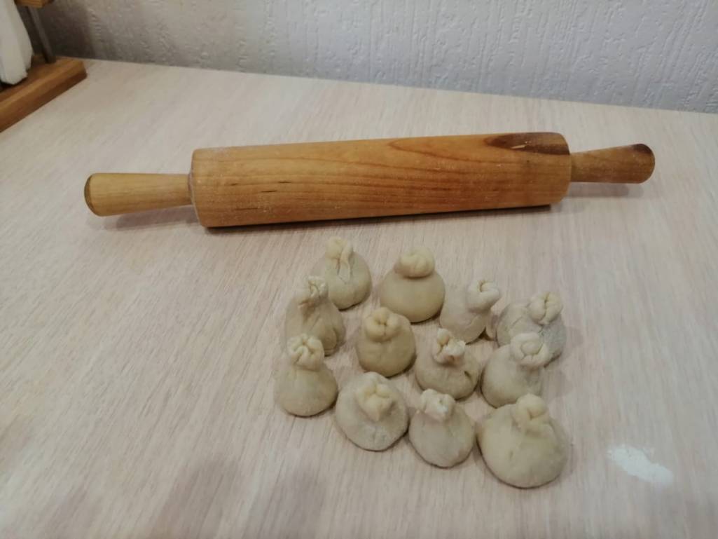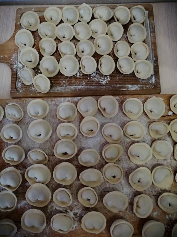 Сначала только сочни раскатывала, потом лепить села . Очень волновалась ,почему у нее руки не такие грязные как у мамы