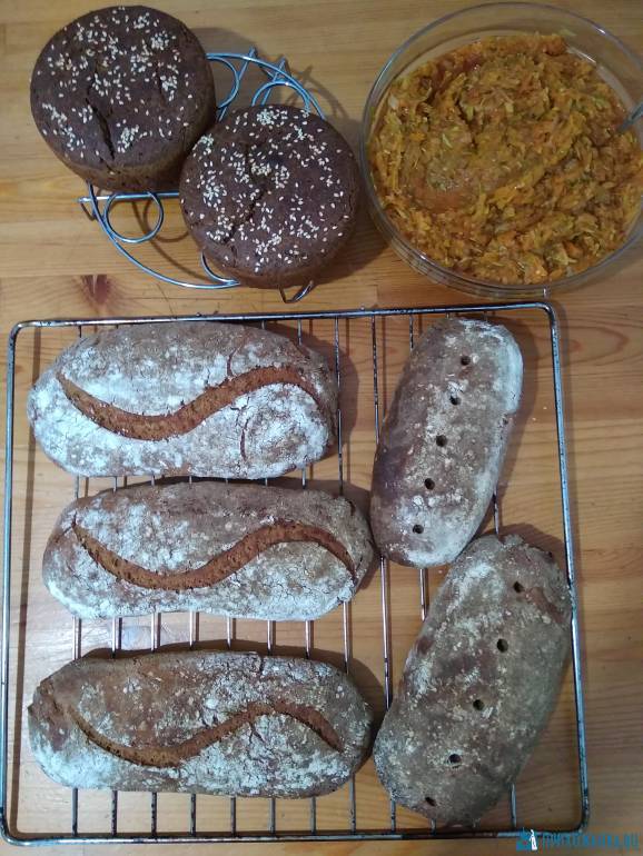 Сегодня у меня запёк: Бородинский и латвийский кисло-сладкий хлеба. Был ещё и пшеничный, но мгновенно испарился, как только остыл.