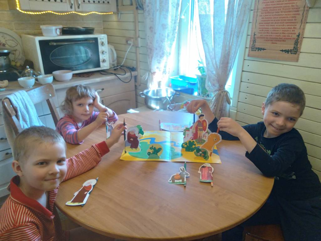 Репетируем домашний спектакль, будем показывать на Др .Старец Герасим и лев.