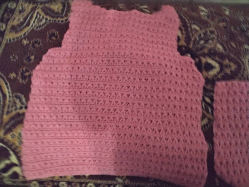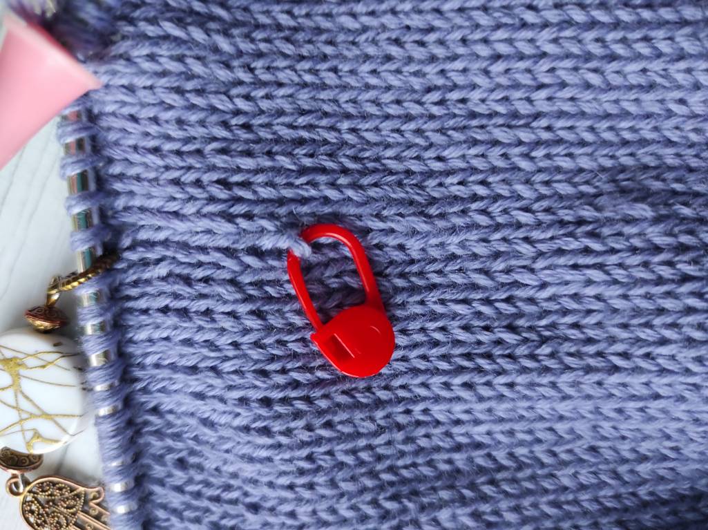 Довязала и оформила рыжика и сиреневую. Связала дважды( тоже размер у первой показался маловат )серо-голубую. Ее пока не оформила. Жду фурнитуру. Связались в подарок подружке три корзиночки. А вот свитер вязался мало. Рядов 10, не больше( на фото видно от красного маркера). Хотя....там же петель в ряду около 300