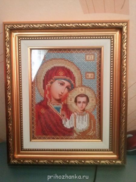 А я наконец-то оформила икону Казанской Б.М. в рамку. Рамку долго пришлось ждать, пока сделают. Теперь осталось освятить и всё! А на лето купила себе вышивать Николая Чудотворца. Думаю, что за лето успею вышить. Фотографии пока скинуть не могу, т.к. с телефона не получается. Завтра попробую с ноутбука.