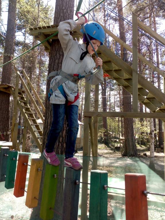 Сегодня Полина с классом ходили в веревочный парк. В честь окончания 1 класса