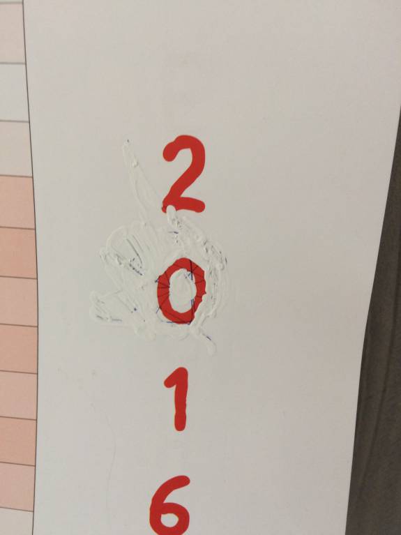 Зарисовала на настенном календаре цифру. А так как старшая у нас педант и чистюля неимоверная, то замазала ручку штрихом, стало снова чисто. (надо сфотографировать ее тетрадь как-нибудь, буквы все одного размера и штабелями, шаг влево-шаг вправо приравнивается к побегу))))
