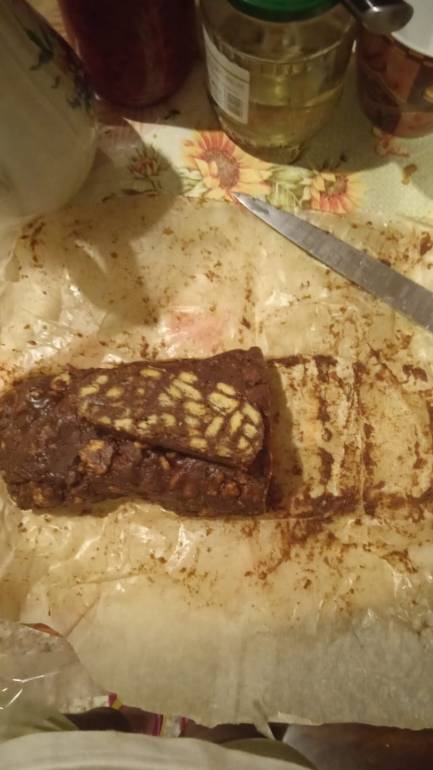 Ксюха приготовила шоколадную колбасу.