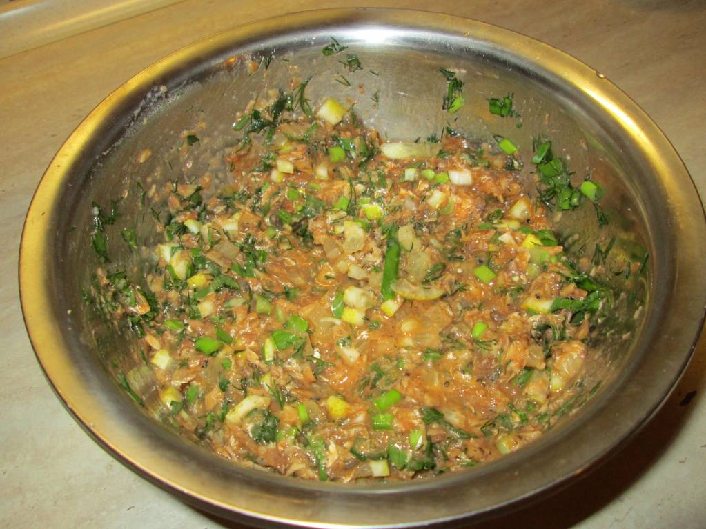 Тесто перед выпеканием хорошо перемешиваю,даже не взбиваю,и выливаю на противень или сковороду,которую выстилаю хорошо пропитанной растительным маслом белой бумагой.