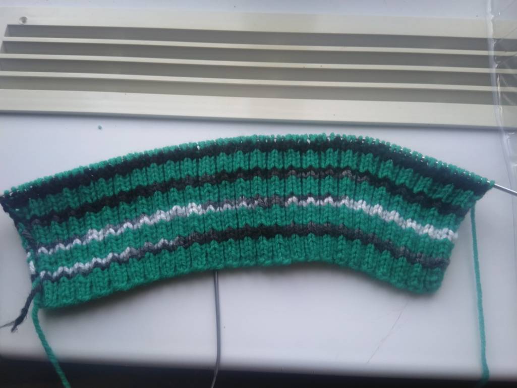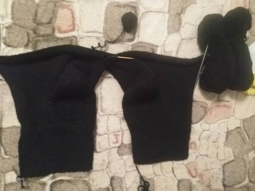 Вяжу носки мужу. Осталось связать мыски, ещё не решила, какие будут.