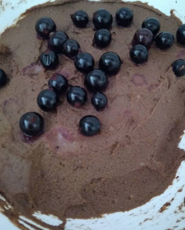 Мусс: запарить 50 г кус-кус (залить на 10 мин 150 мл кипятка), далее добавить бананы (в моем случае 4 маленьких), половину шоколадки и все измельчить в блендере. На вкус напоминает пирожное "картошка".