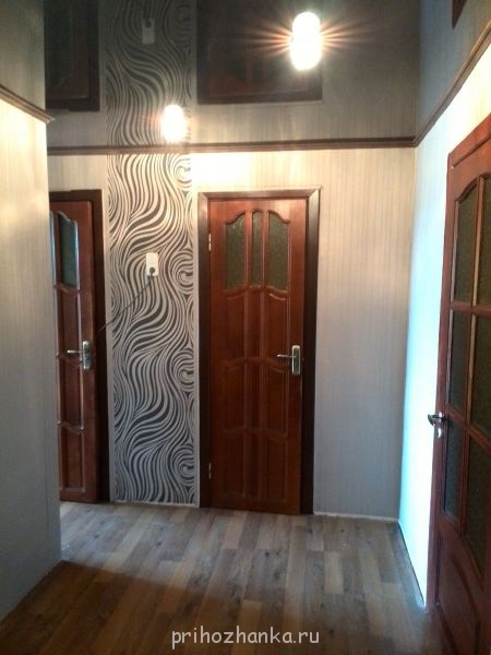 А я вчера после работы начала клеть обои в коридоре. Закончила в 6 часов утра. Ночью хорошо - никто не ходит, не мешает. Сегодня на кухне. И стирки за неделю скопилось(( а загрузка у машинки 3,5 кг( так пришлось 5 стирок организовать. Покажу результат оклейки: фото с телефона и к вечеру муж прибил ещё плинтус. Потолок натягивали на прошлой неделе(шоколадный глянец). Я вообще впервые цветной увидела только у себя. Ну вот захотелось чего то необычного))) мне понравилось.