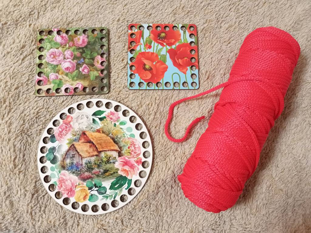 Это донышки для корзин, можно использовать, как крышки. Обвязываю крючком, пробую.*Елена*: 04 янв 2023, 21:52 Мышенька, Ирочка а на втором что, просветичерез эти дырочки нужно протянуть шнурочек?