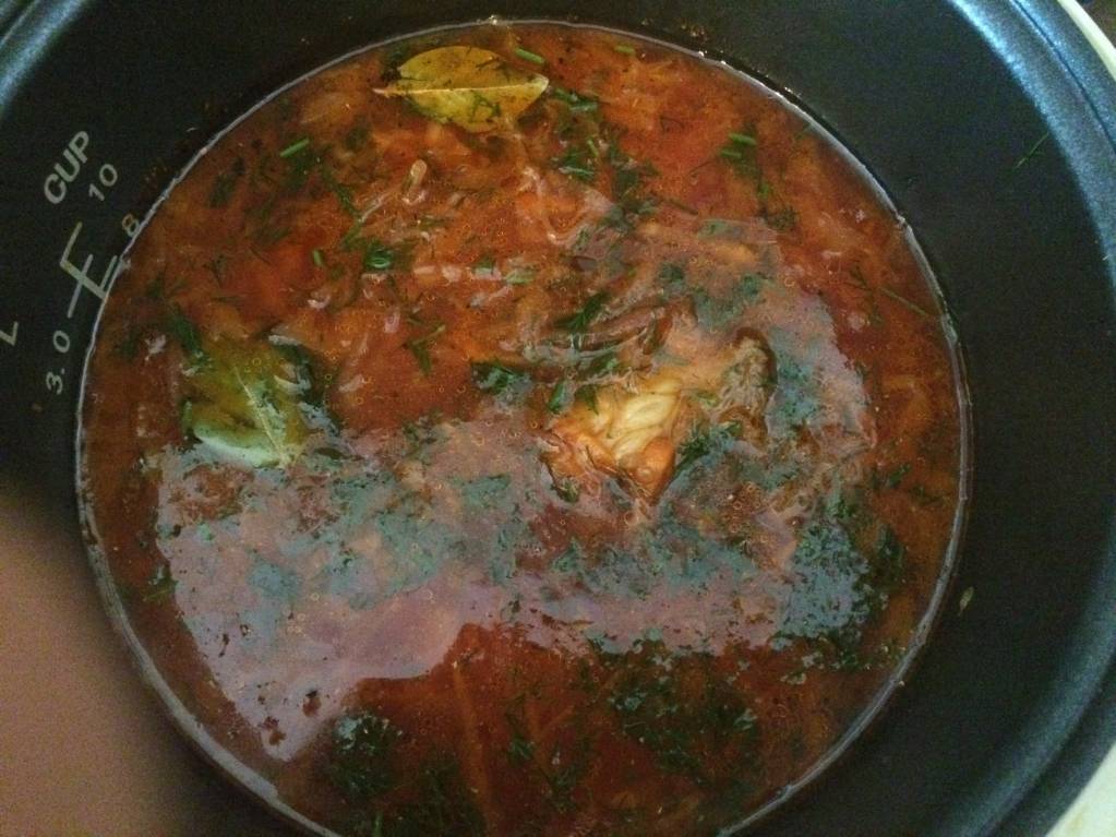 специи и зелень,если я дома,добавляю за пару мин. до окончания готовки,а если нет то все сразу. С супом все просто,мясо+лук морковь пассеруется затем картофель, крупа +бульон/вода и на тушение....стараюсь заливать кипятком или горячим бульоном. Все! А вот борщ если так варить то он не будет красным,мне не обязательно! Если уж любители красного борща то можно заранее сделать зажарочку со свеклой и как обычно добавить в конце варки. Я использую МВ когда очень некогда или ухожу а обед нужен в мое отсутствие... и еще, стараюсь первые блюда переливать в обычную кастрюлю,не даю стоять долго на подогреве потому как борщ обесцвечивается и приобретает вкус старого жира(может я вредная такая и это мое личное восприятие такое...не знаю)