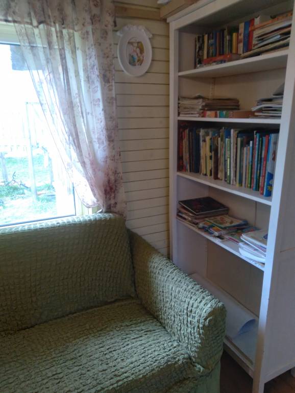 У нас на даче есть удачный уголок для чтения, сегодня сидели читали 2 часа с детьми, как -то располагает к чтению книг). Часто на даче читаем.