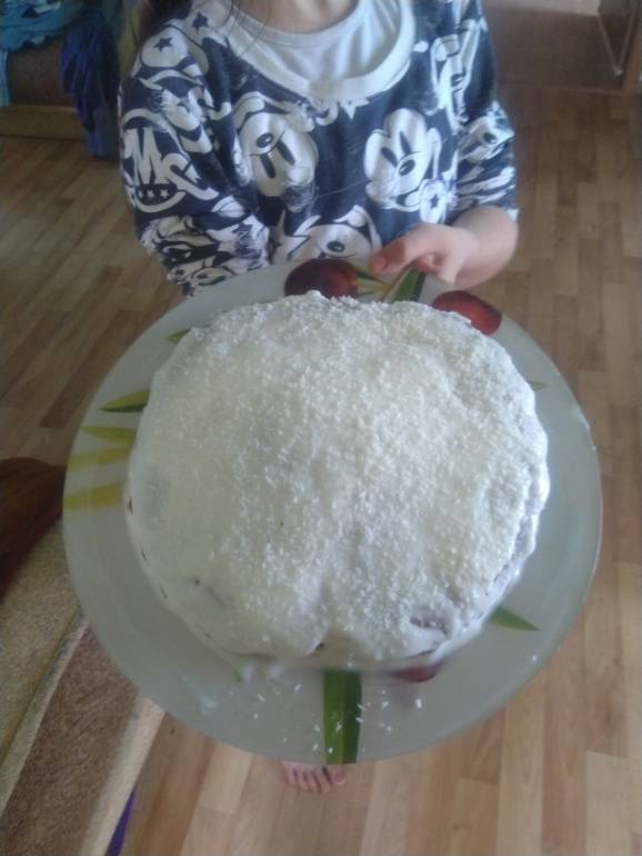 Мы испекли ленивый медовик, кремом намажем сметанным и в холодильник отправим, если дети позволят