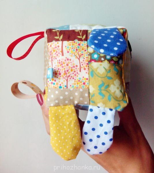 Сегодня между делом сшился такой кубик-развивашка для Вовки: