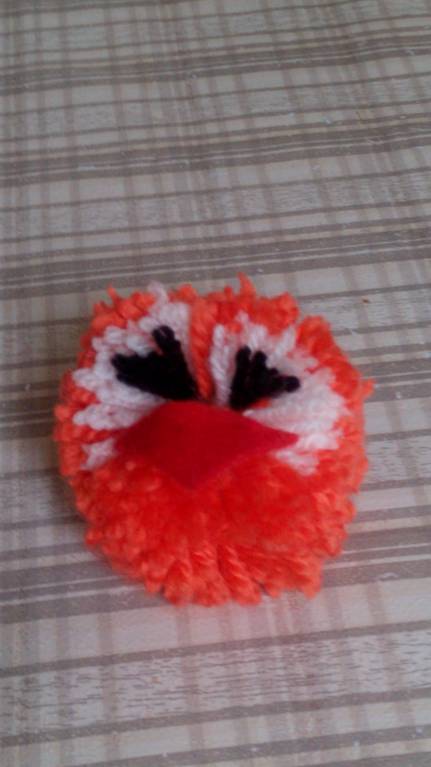 Еще нашла одну птычку из старых поделок - помпон с клювиком: