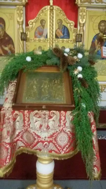 не помню точно, что в центре, кажется все-таки икона, а не фигуры Младенца и Богородицы и Иосифа, но кажется что и ясельки были