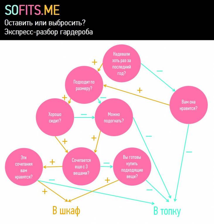 http://www.matrony.ru/garderob-razobrat ... i-vyizhit/Собирая образы, записывайте, чего не хватает. Из комплекта в комплект просится украшение, браслет или сумка определенного цвета? Записывайте. Идея нового образа, а не хватает условных «лабутенов»? Пишите все: приоритеты расставите потом.