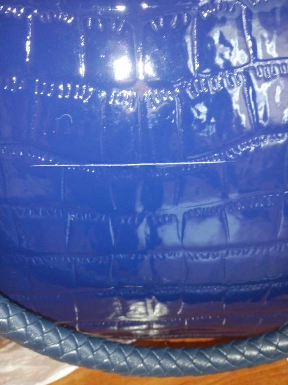 Заказала себе сумку, ждала больше месяца, сегодня получила. Сумку прислали так хорошо упакованную, внутри сумки вложен пузырь с воздухом, но несмотря на это один край у сумки замят и ещё и царапина см 5 на сумке. На синей лакированной сумке её так видно. Так ещё и помимо этого брака, не смотрится эта сумка в сочетании со мной
