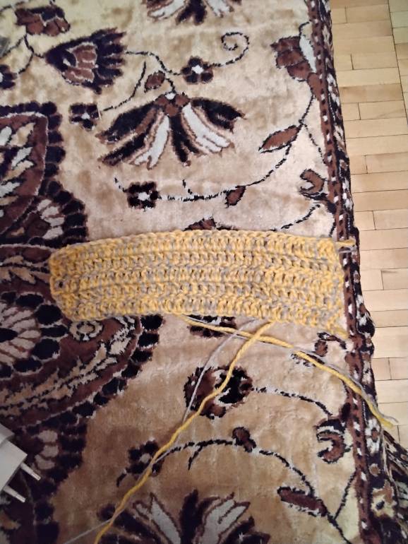 Пробовала разные узоры из желтой пряжи. Когда начала вязать свитер, то мне не понравилось. Очень ярко. Решила добавить серый цвет. Вот что получается