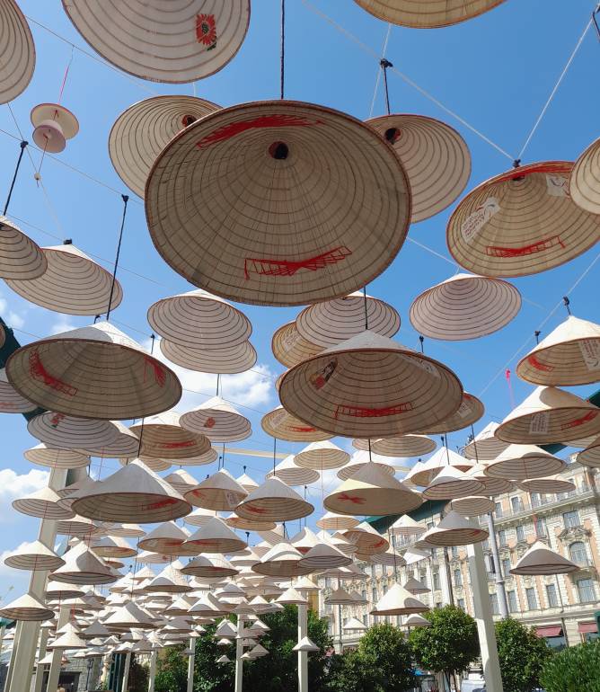 Ещё в этот день погуляли и посмотрели фестиваль культуры Вьетнама. Ярко, красочно, море цветов, водопад, вьетнамские шляпы.