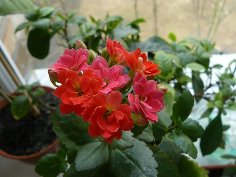 Недавно вот пальма отцвела, а сейчас каланхоэ цветёт. Красавец