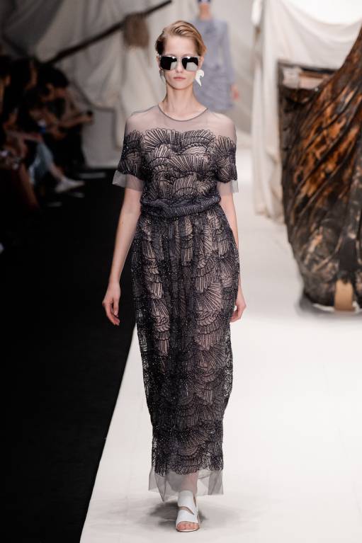 Кстати, про цены. Цены по сравнению с французскими дизайнерами вообще не большие, но для людей со средней зарплатой все равно неподъемные. Например, платье этой картинке (почему-то его фотография вставилась в начало ряда картинок) стоит почти 18000.