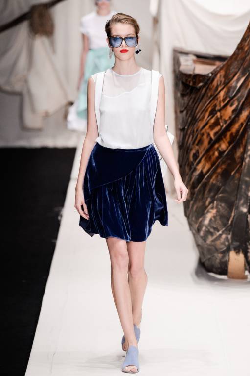 Пусть эти выходные будут днями российских дизайнеров, с вашего позволения, дорогие. Наши модельеры тоже создают интересные и красивые вещи, у них есть свой почерк, то очень хорошо. В этой новой теме поделюсь коллекцией весна-лето 2016 Алены Ахмадуллиной. Все тренды она сумела в ней сочетать, очень все в меру и гармонично: бархат, тюль, чуть свободноватые фасоны юбок и брюк (даже если по фигуре изделие, все равно тело оно не обтягивает), чуть увеличенные плечи, благородный синий.